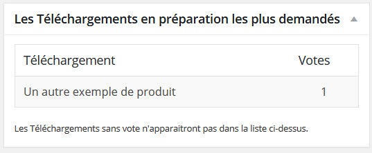 - Permet aux clients de voter pour un téléchargement spécifique. Les votes sont affichés sur le téléchargement et sa page de modification et sur le tableau de bord de WordPress.