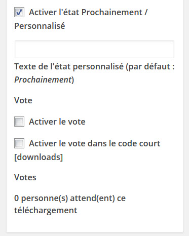 - Ajoute un champ de texte dans les réglages du téléchargement afin de pouvoir définir le texte à afficher (par défaut « Prochainement »).