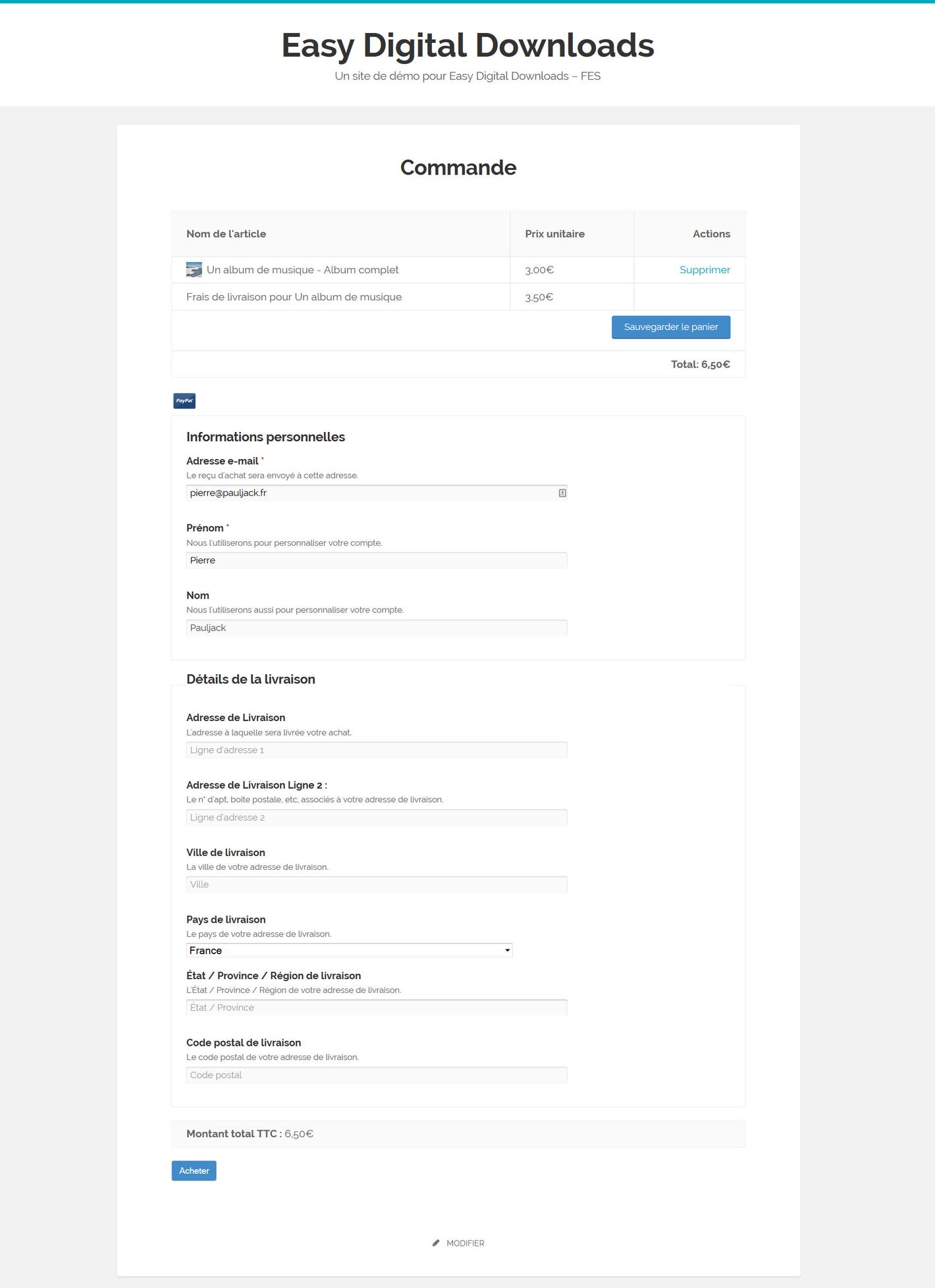 Avec cette extension, vous pouvez facilement recueillir les informations de livraison de vos clients lors de l’étape de la commande, fixer les tarifs d’expédition pour les commandes nationales et internationales, et marquer les paiements comme étant expédié ou non.